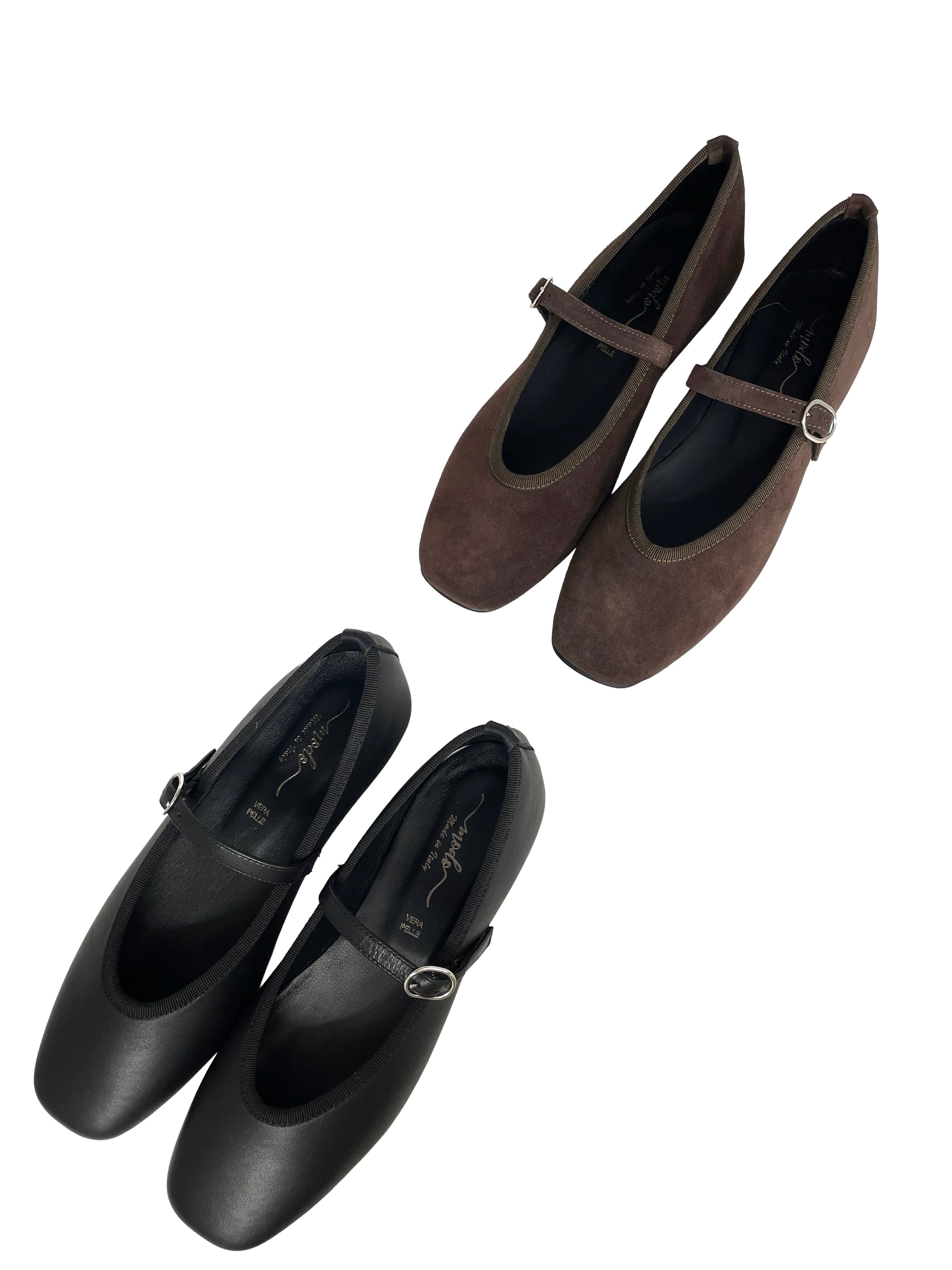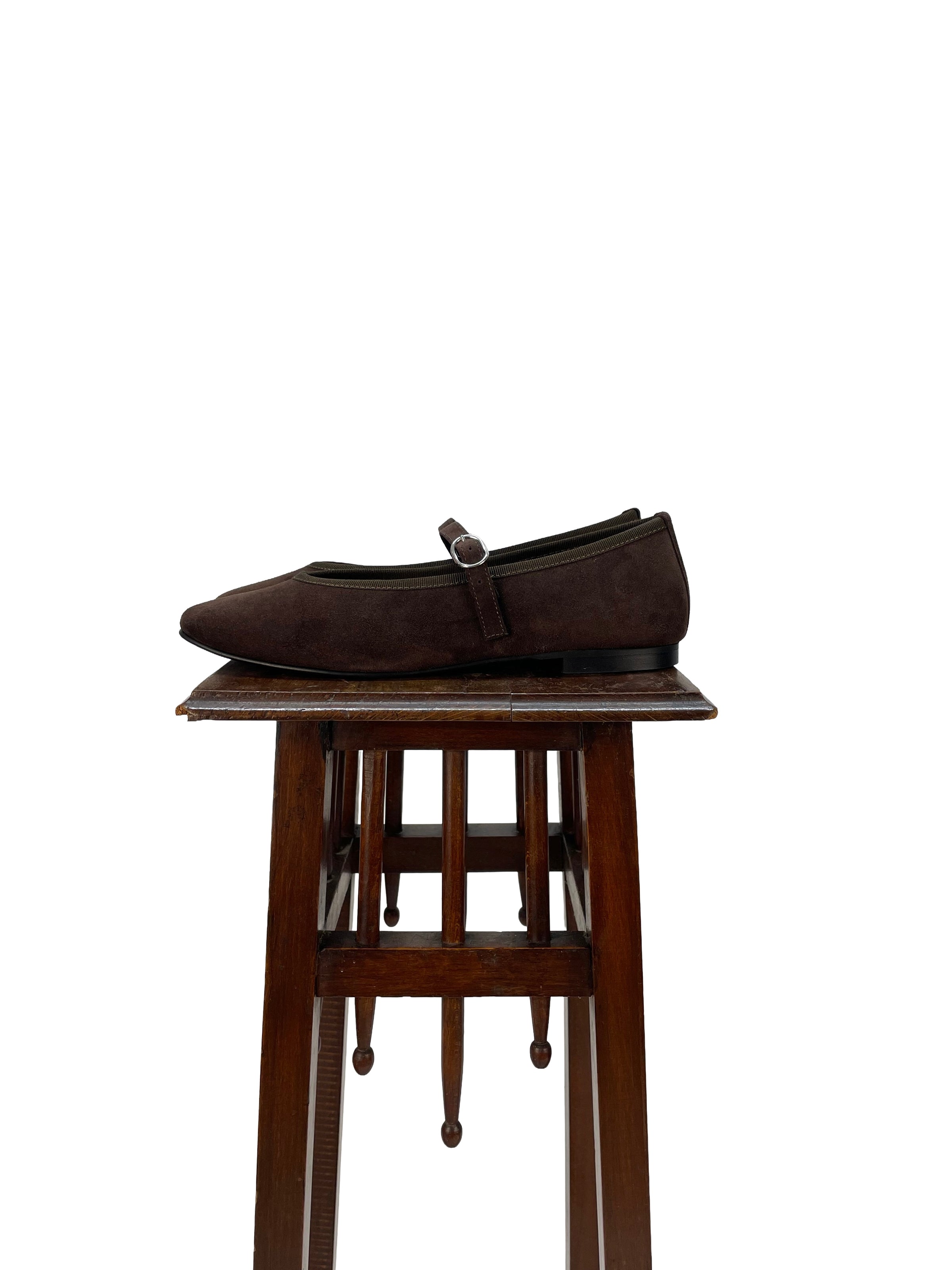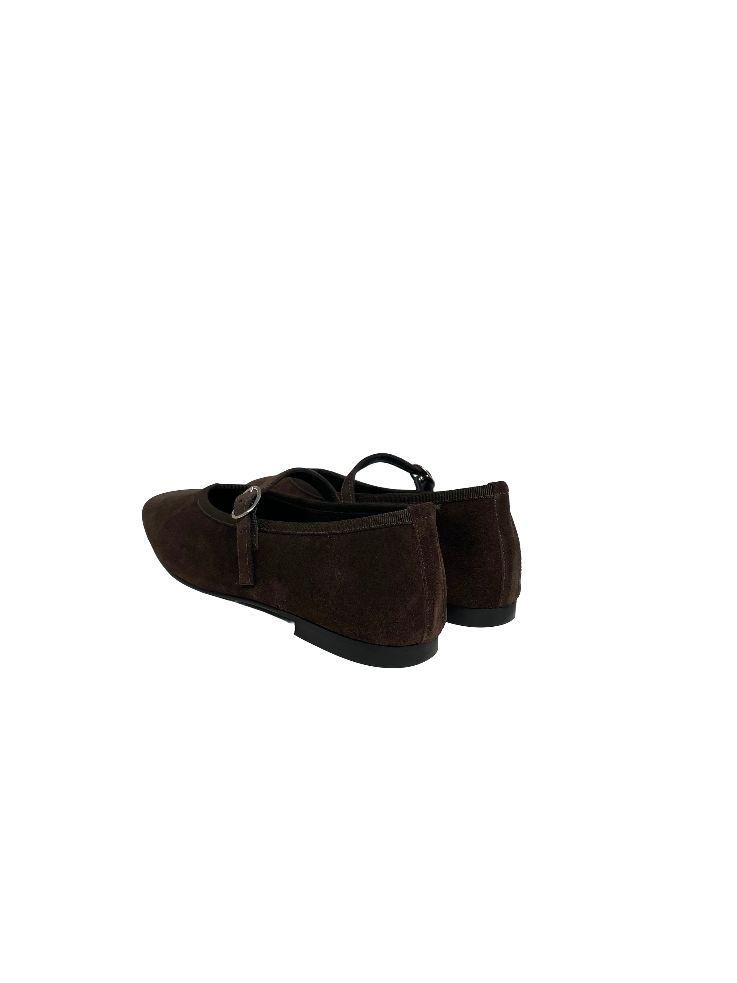 Mary jane flat disponibile in pelle nera o in suede testa di moro. Calzata leggermente ridotta.