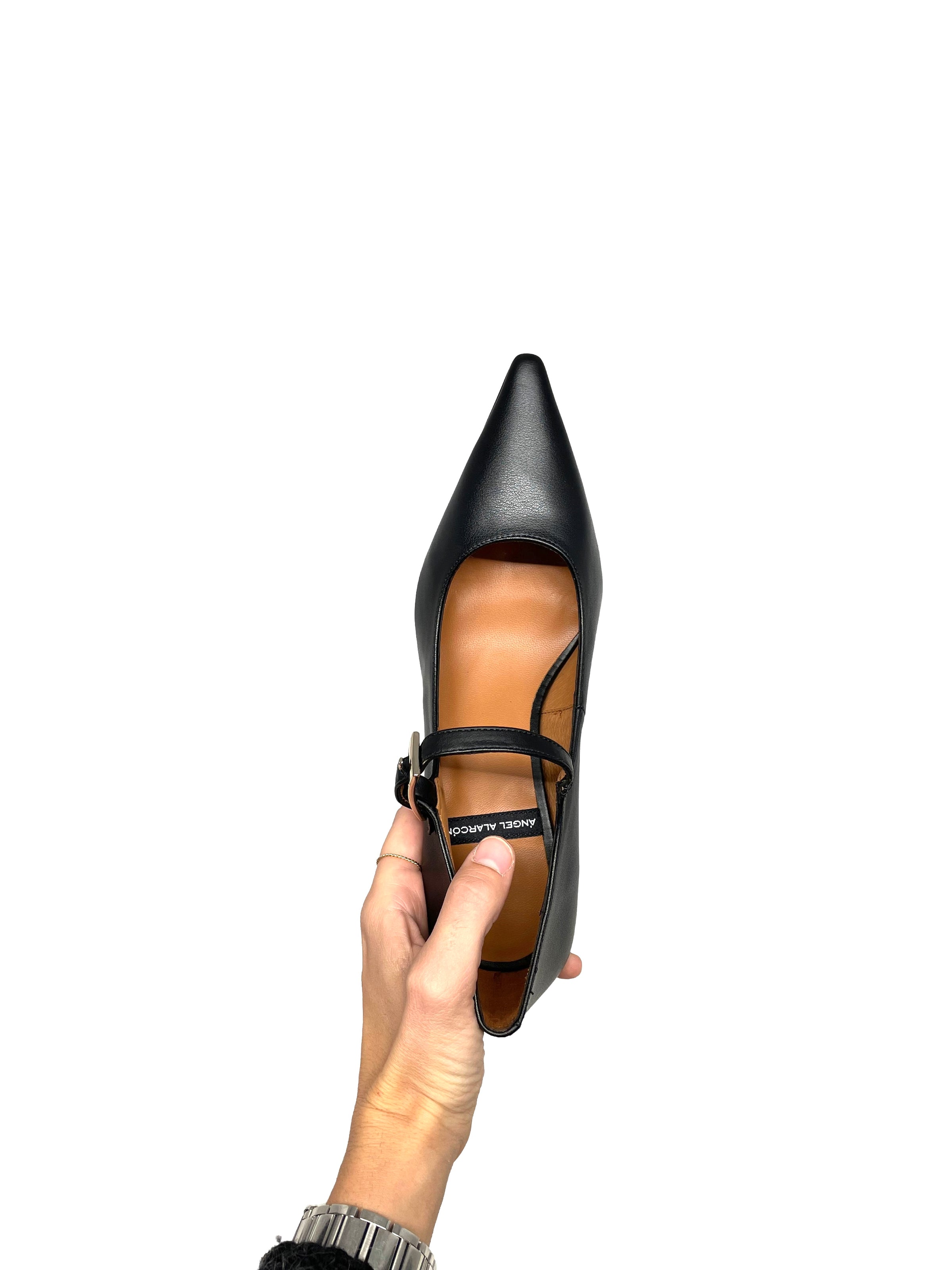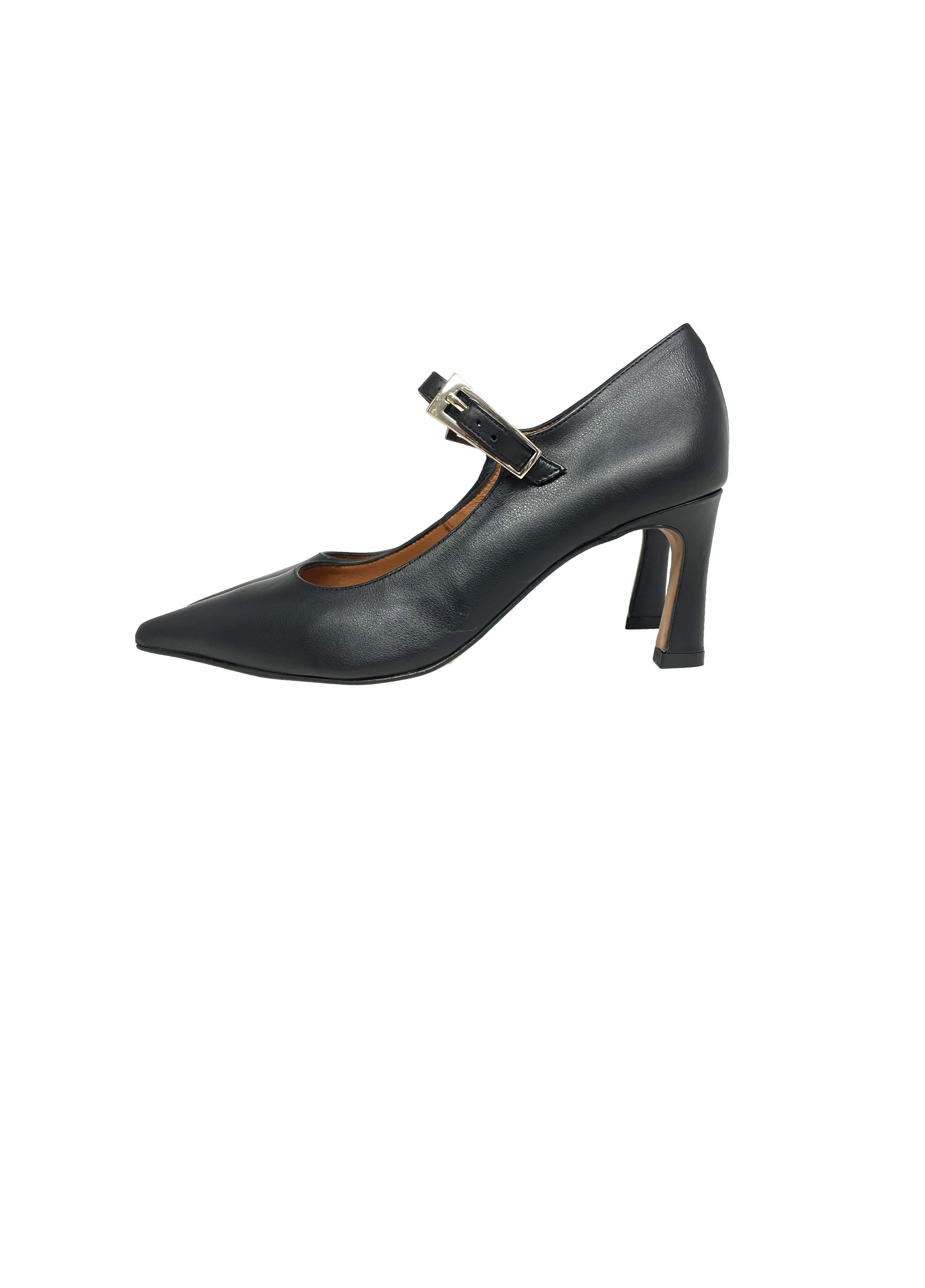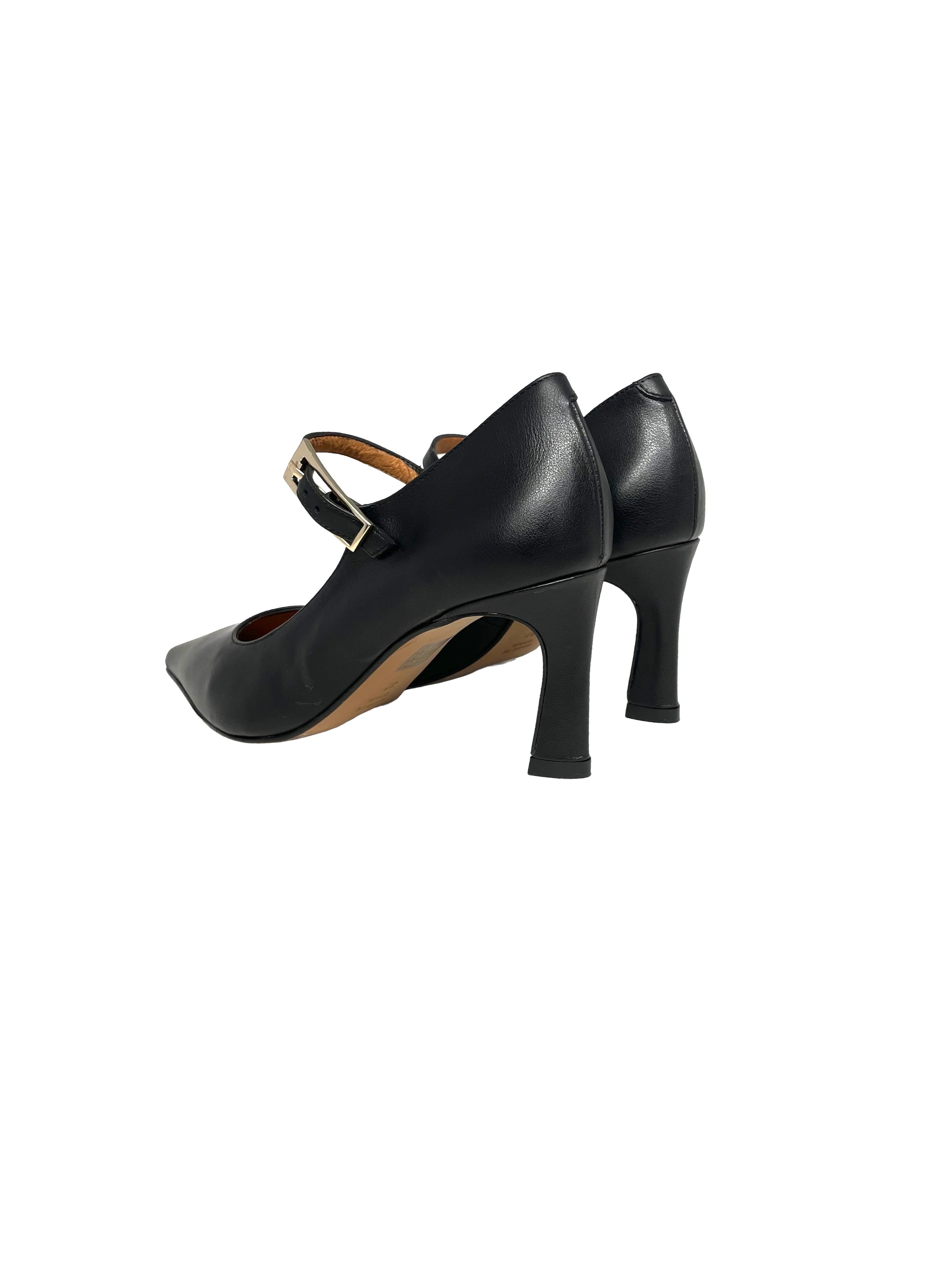 Mary jane con cinturino con fibbia dorata, tacco 6 cm. Disponibile in pelle nera e burgundy. Calzata regolare
