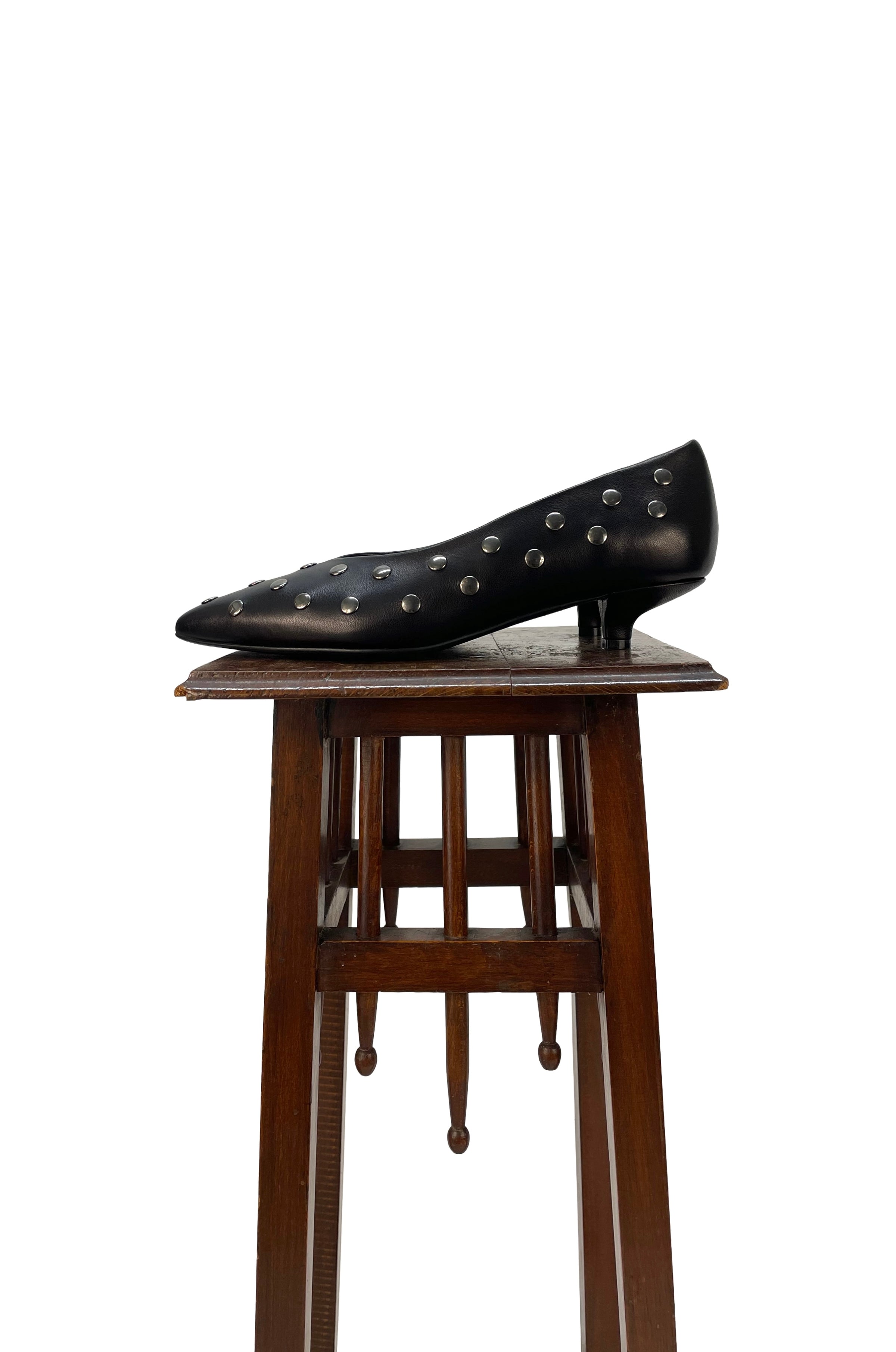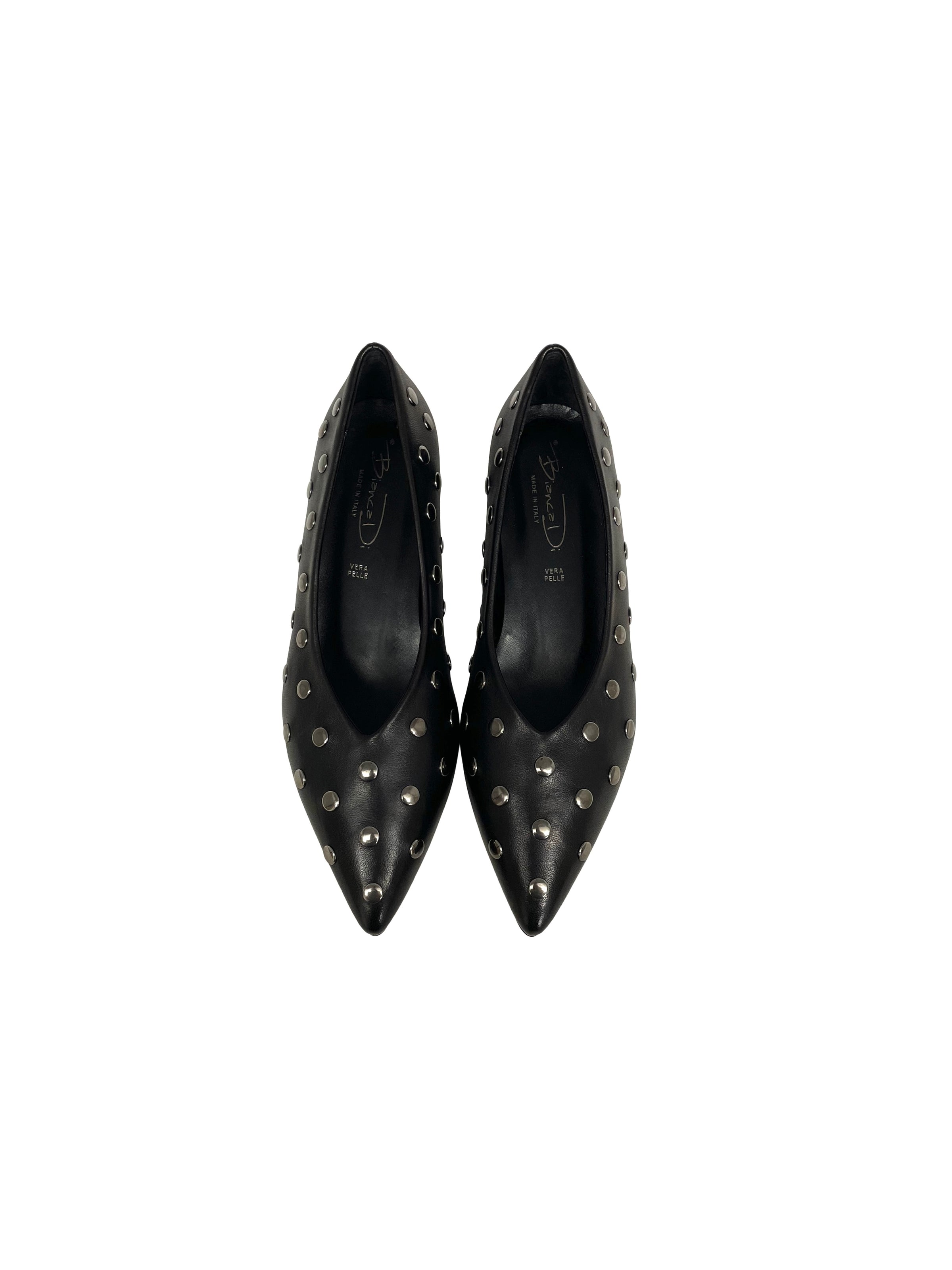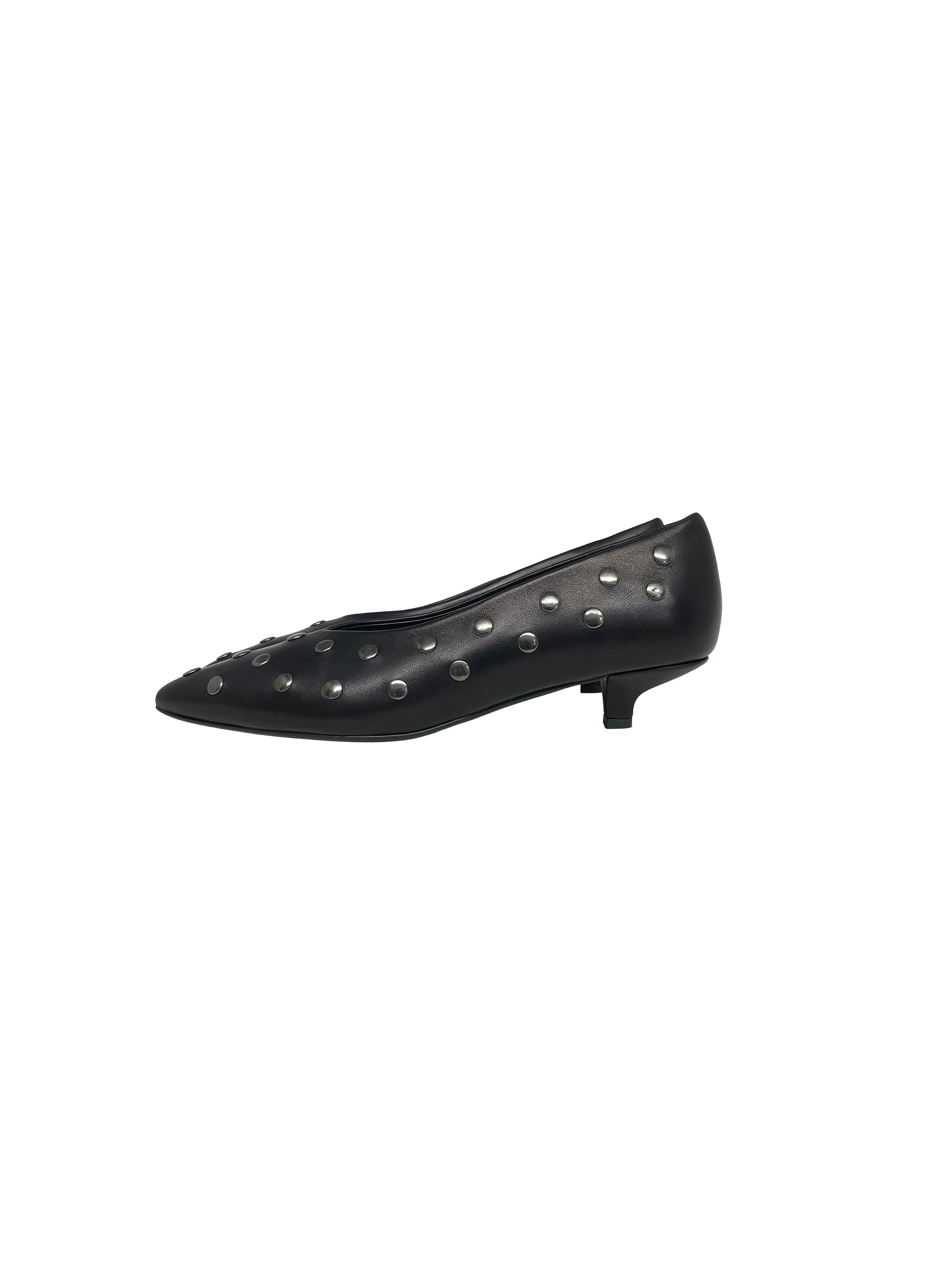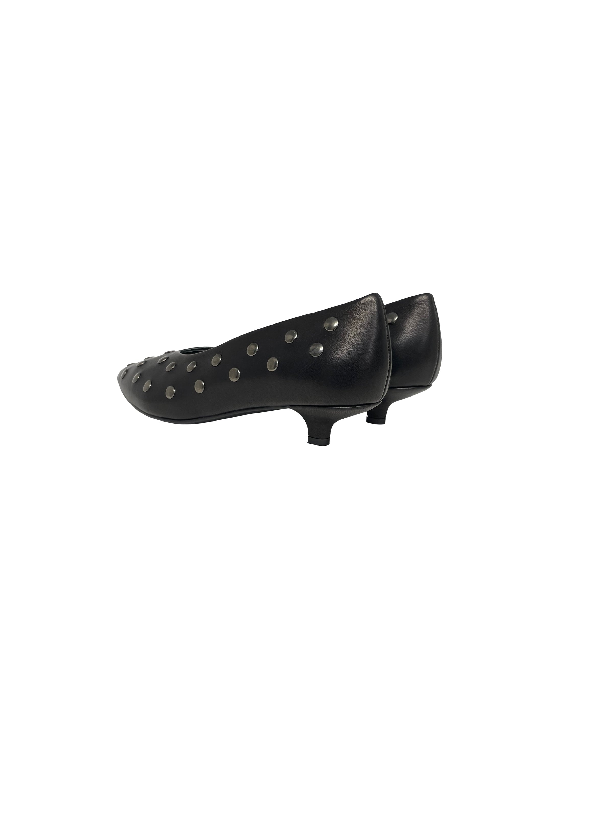 Pumps con kitten heels in pelle nera con borchie silver. Calzata regolare.