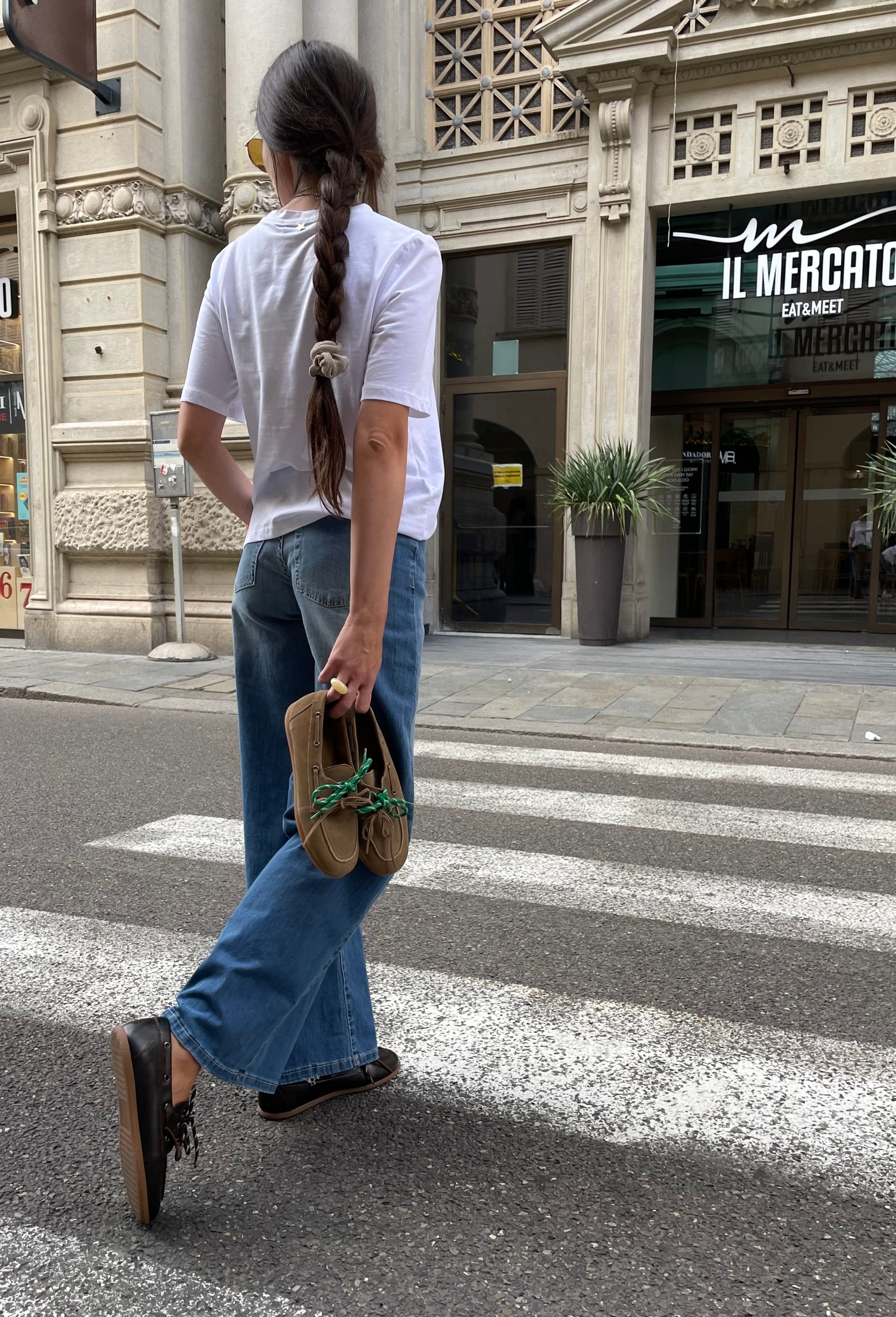 Mocassino allacciato, disponibile in pelle moro e in camoscio camel. Dotati di laccio in tinta e in corda colorato. Calzata abbondante.