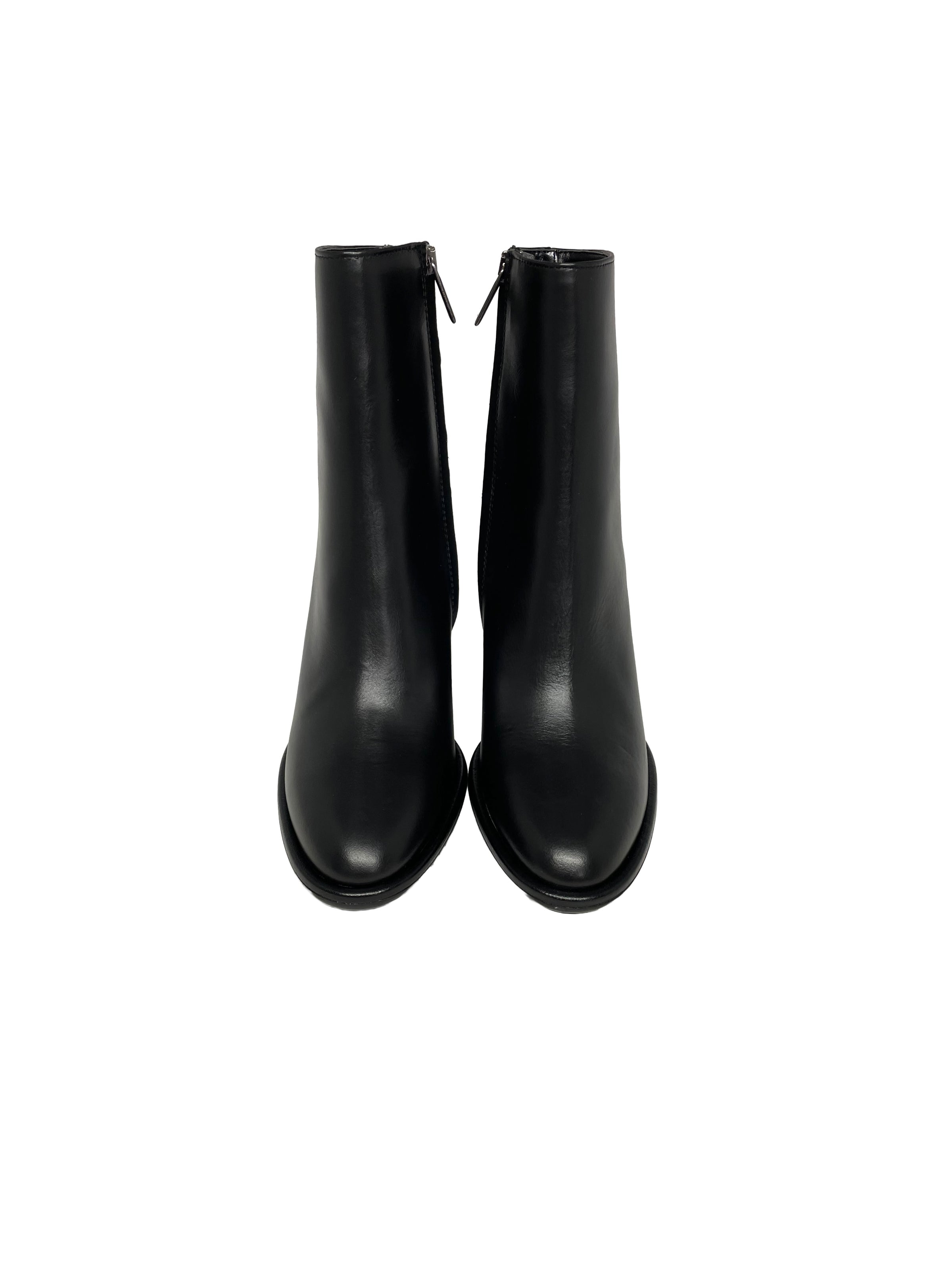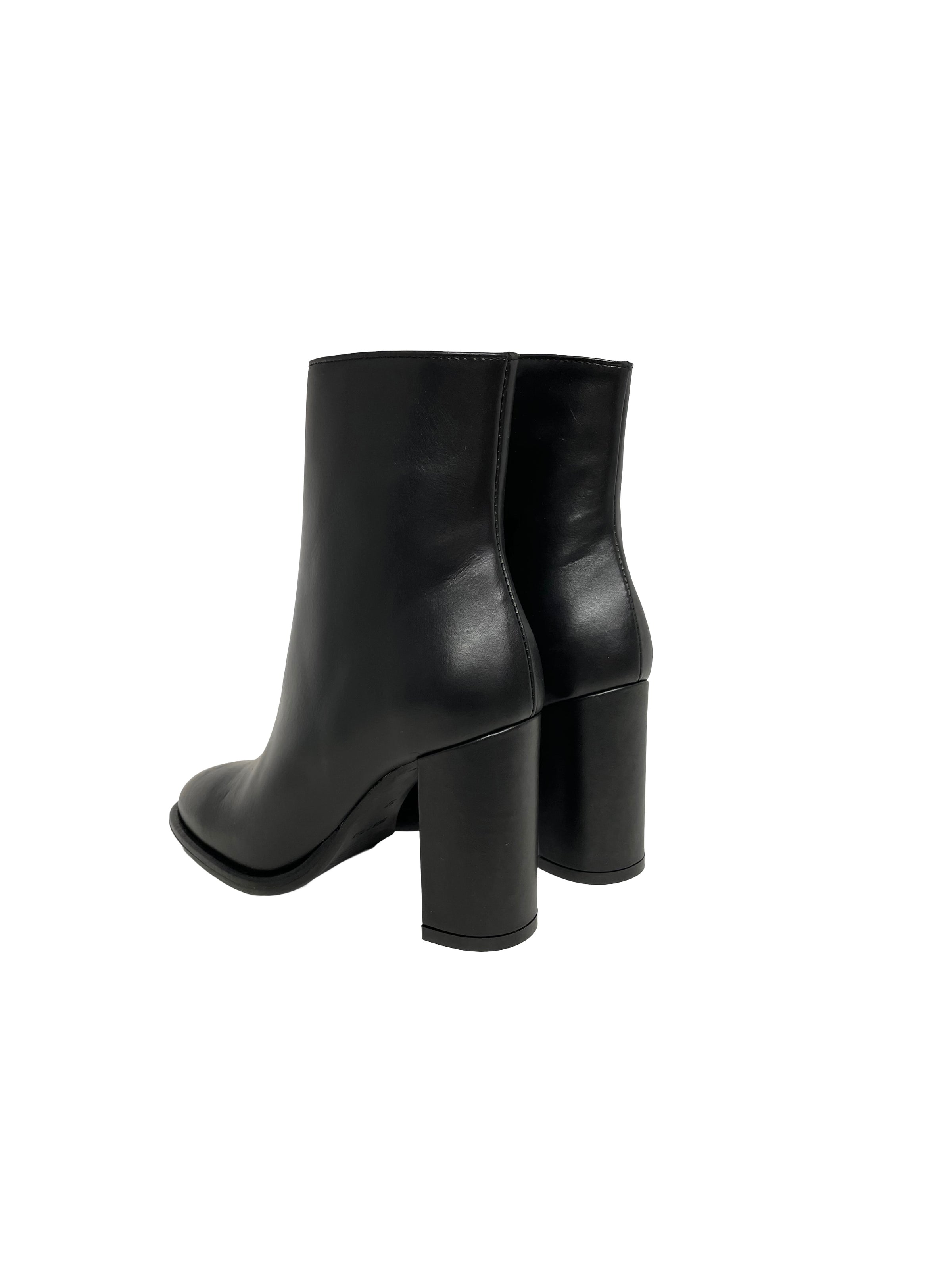 Bootie in pelle nera con tacco 8,5 cm con punta arrotondata e zip interna. Calzata regolare.