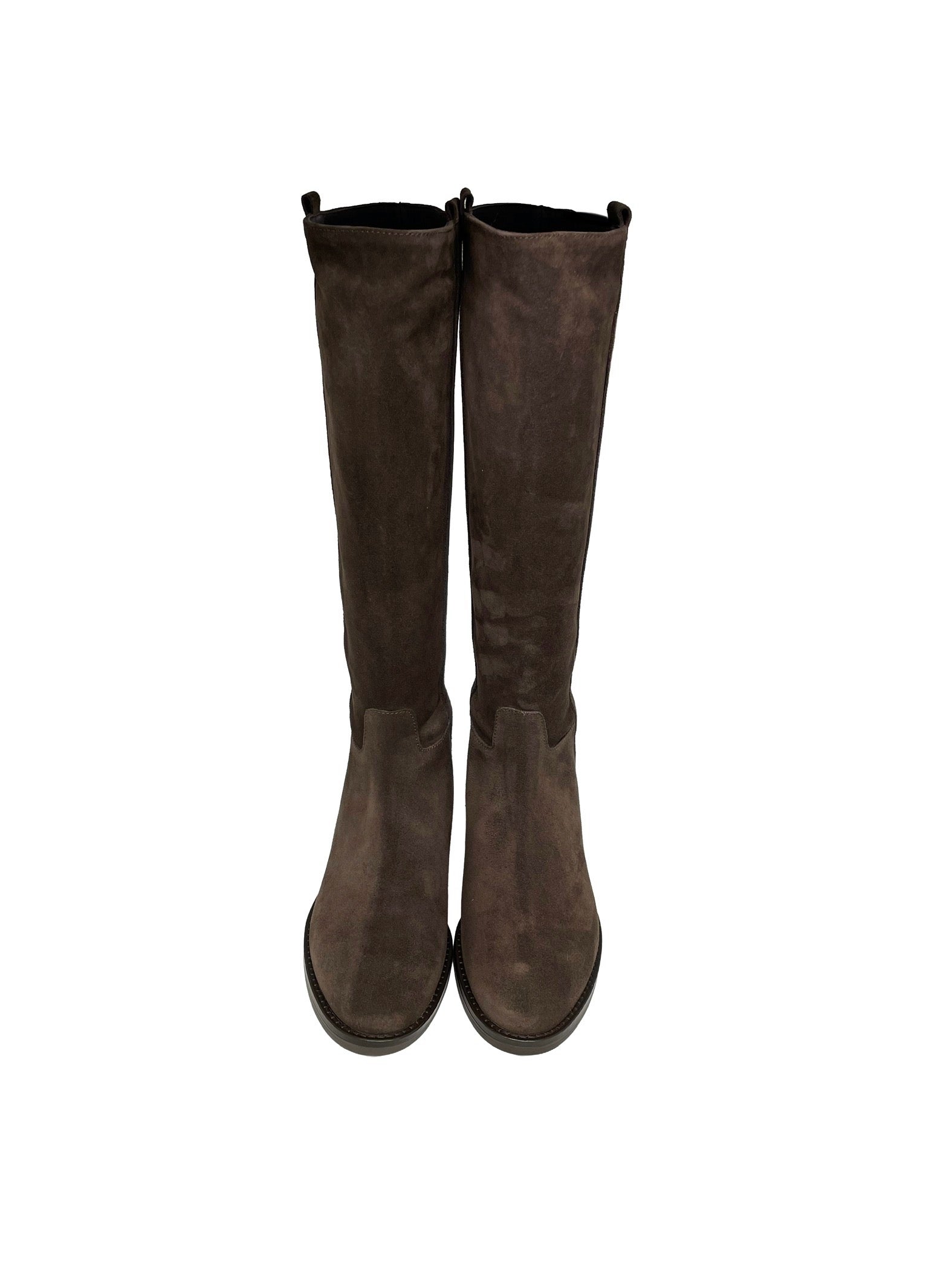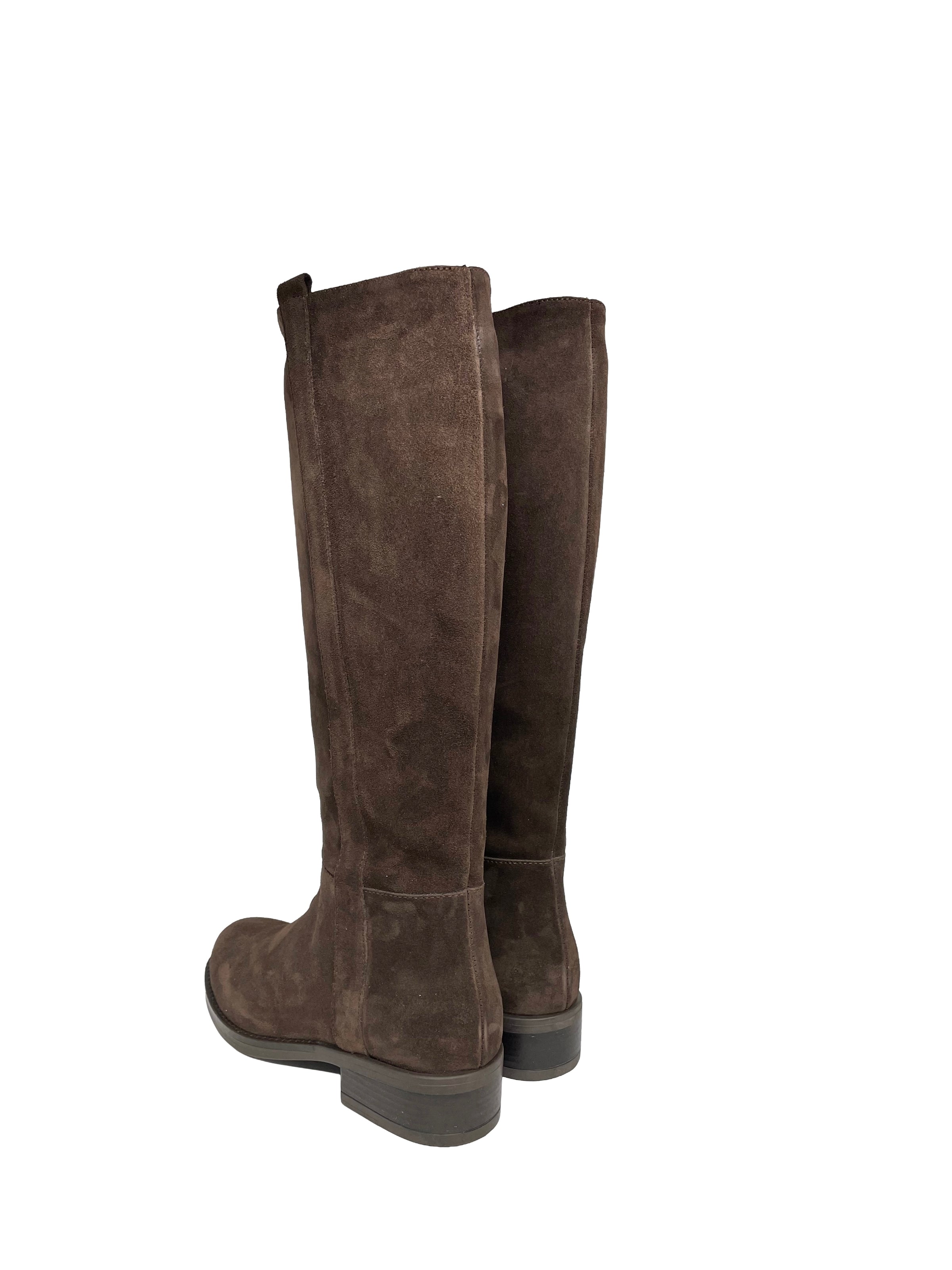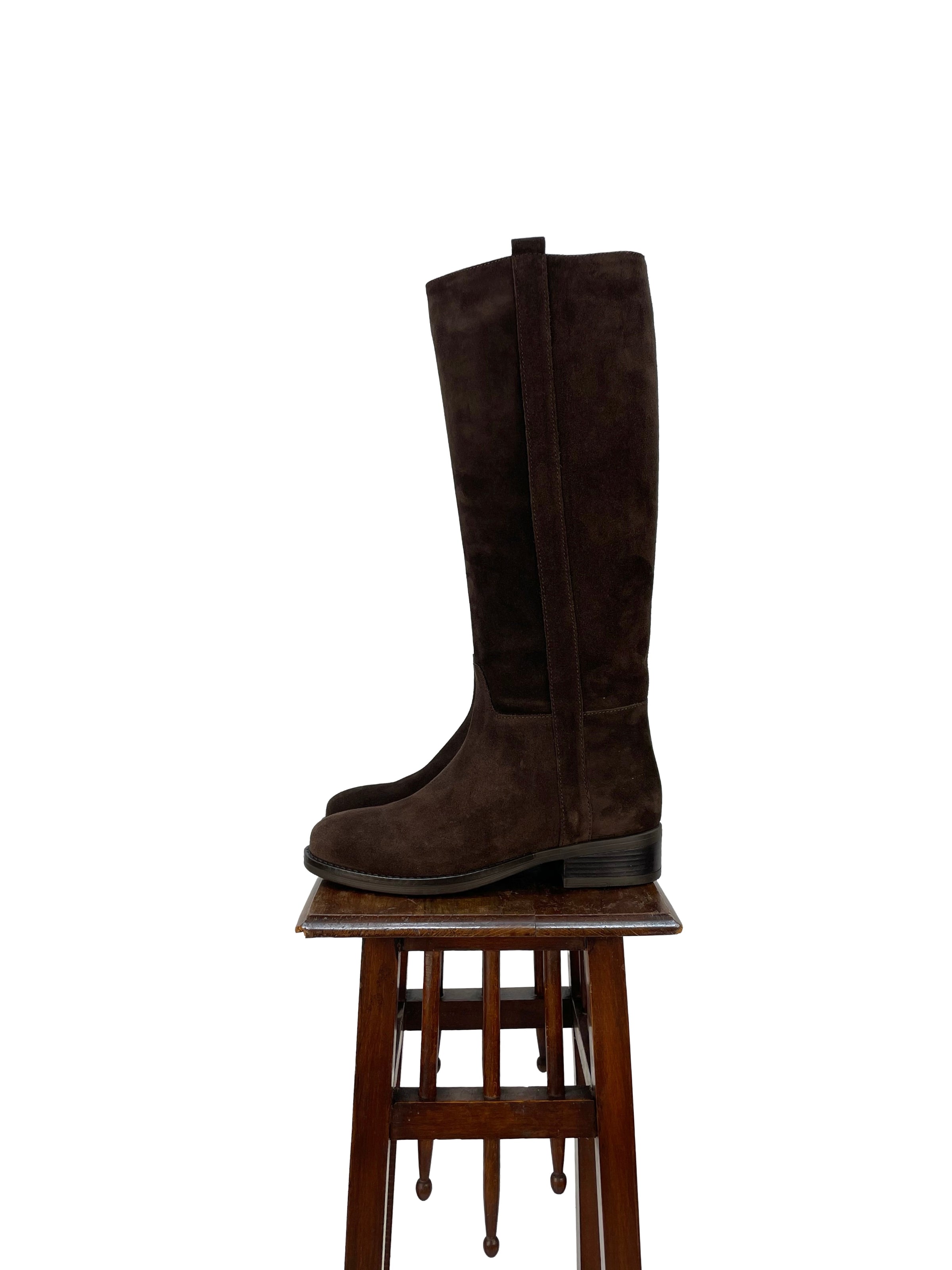 Stivale Camperos in suede cioccolato. Senza cerniere. Calzata regolare.