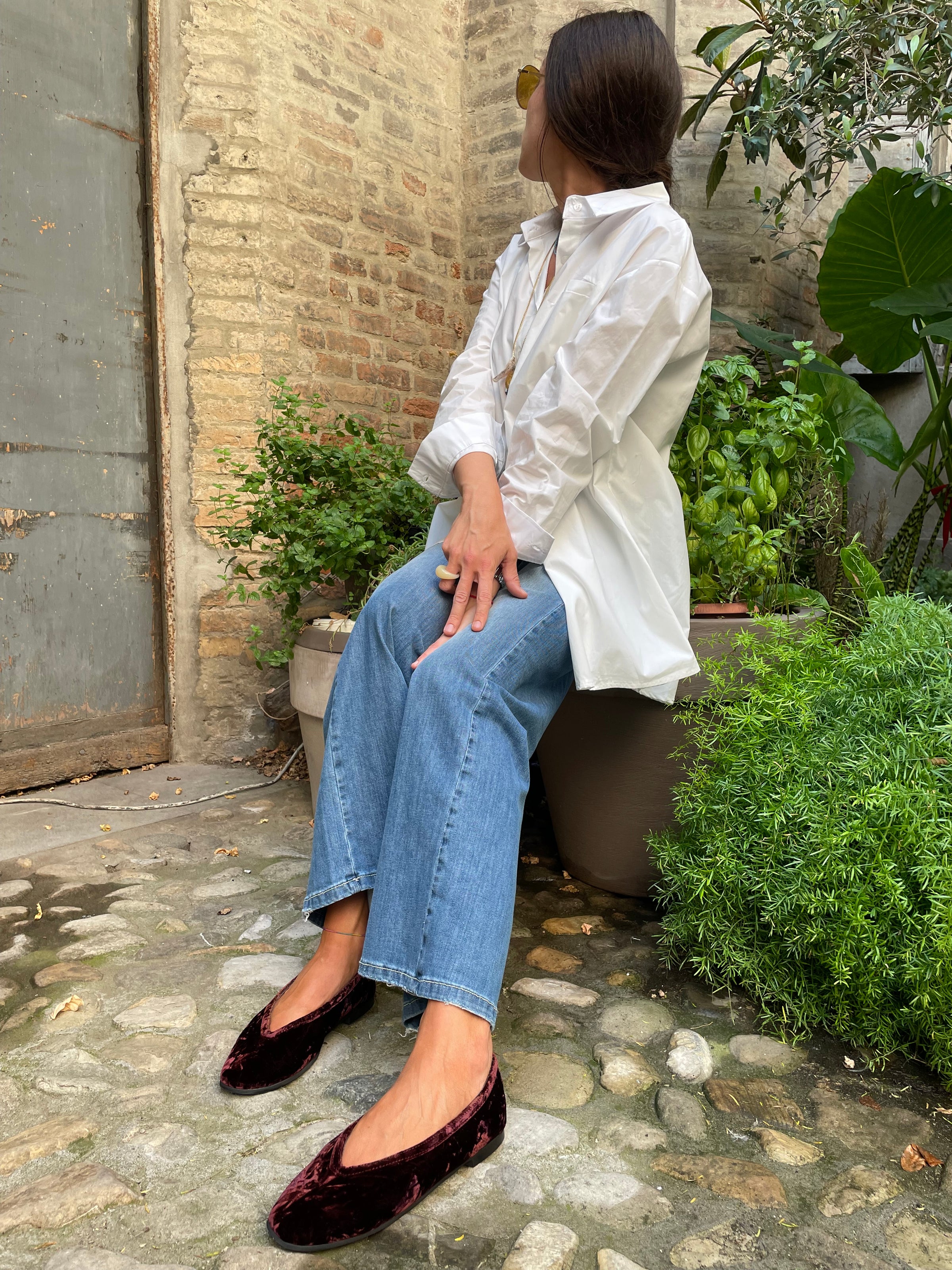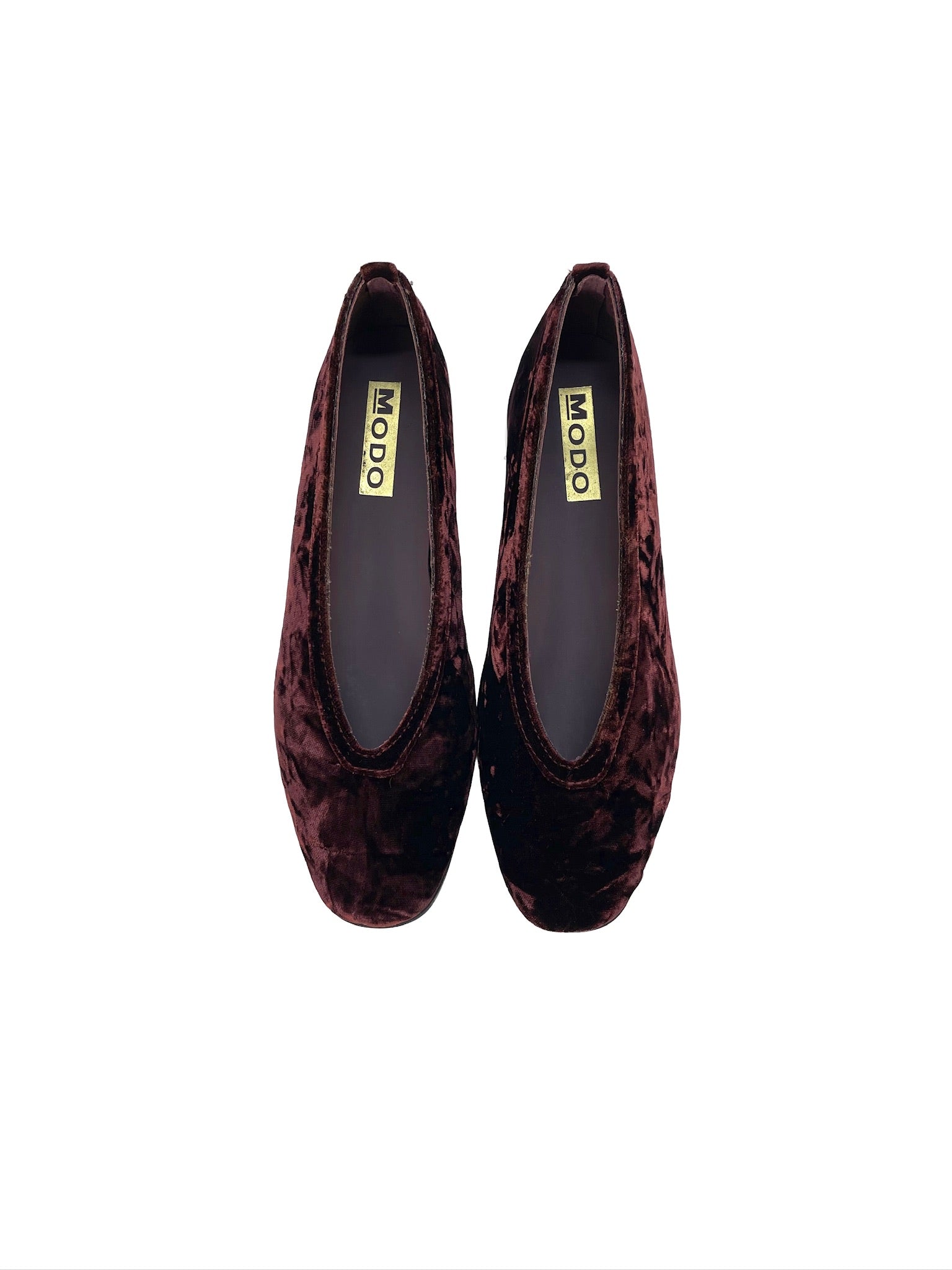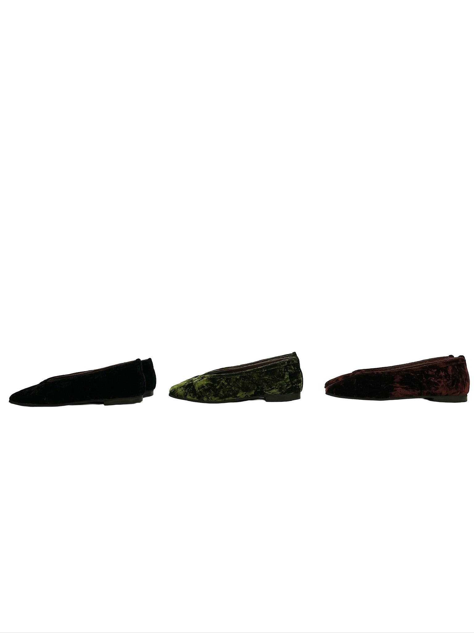 Nuova versione autunnale della nostra ballerina Alba. Disponibilie in 3 splendide tonalità di velluto moirè. Calzata regolare.